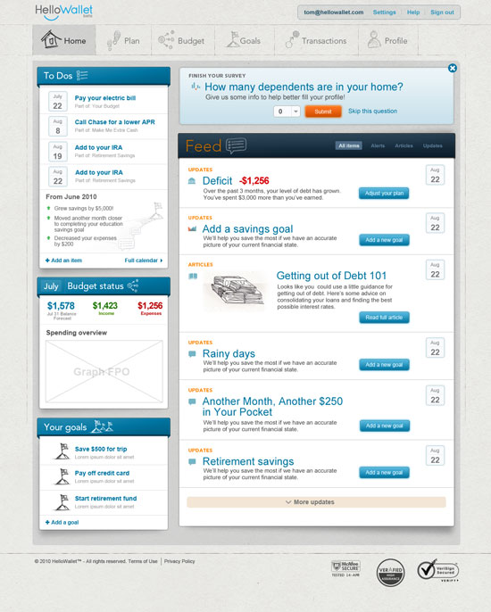 My work with HelloWallet involved leading the design and front-end development of its personal financial guidance web application.
